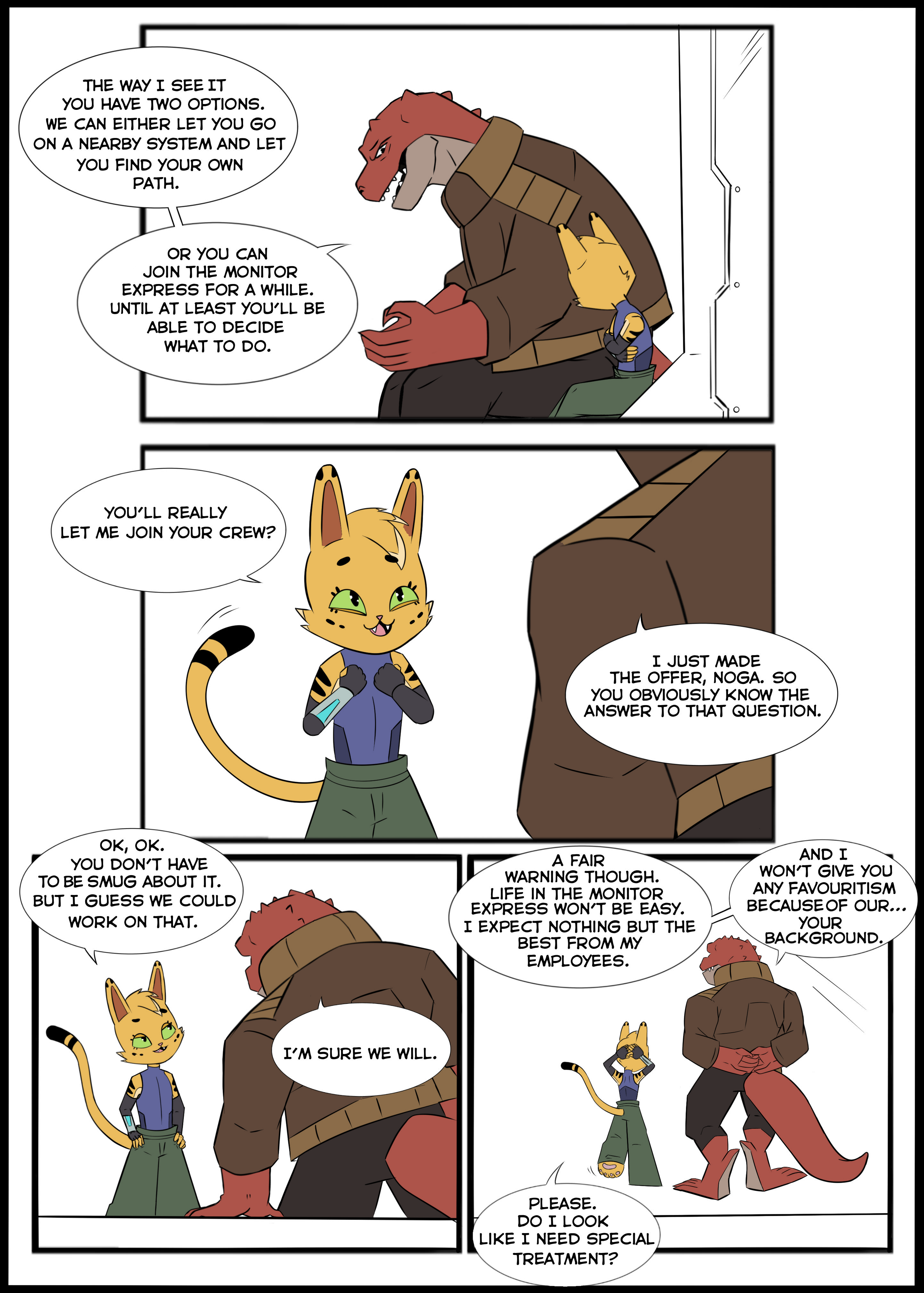 Through the comic plot, Noga continues to grow and learn how to survive in a harsh and dangerous universe, relying on her new unlikely family and discovering her true capabilities.
